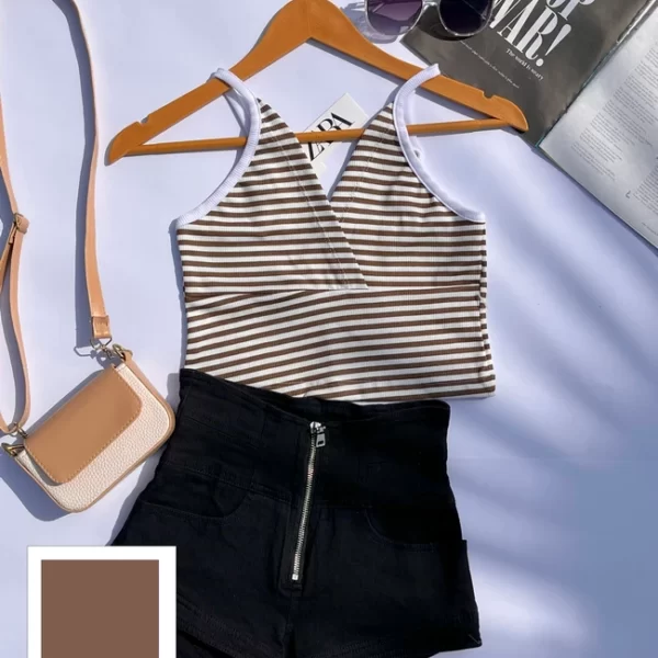 کراپ تاپ راه راه طرح زارا پشت بندی رنگبندی مطابق تصویر فری سایز (مناسب سایز 34تا 42)